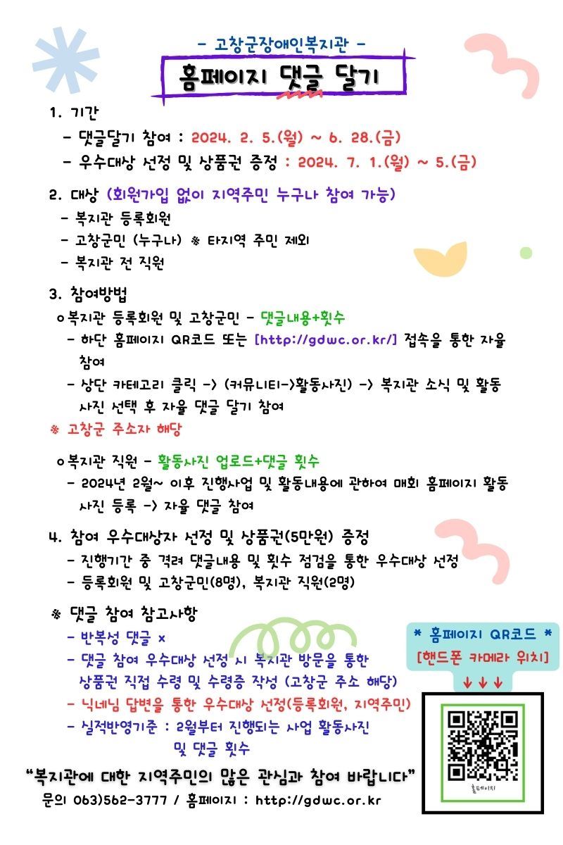 2월 복지관 주요소식, 홈페이지 댓글참여 홍보안내문