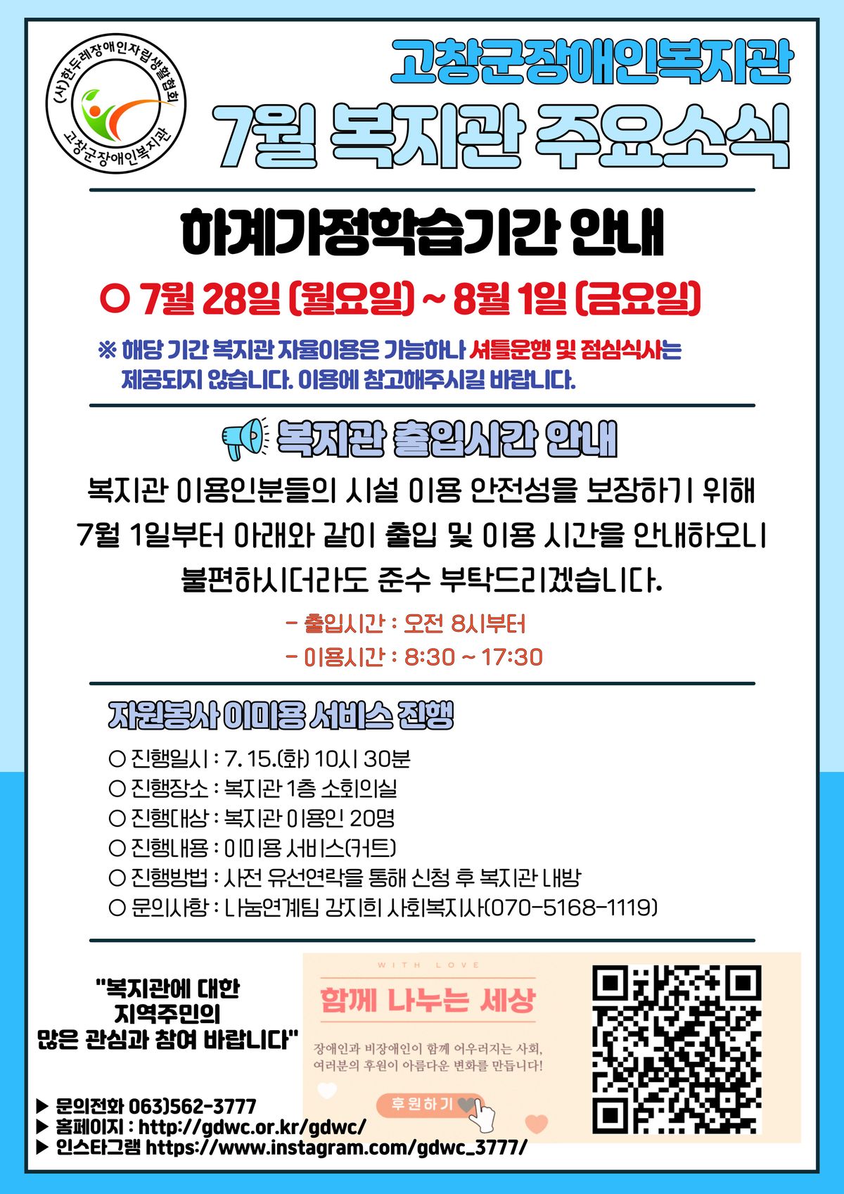 7월 복지관 주요 소식 안내