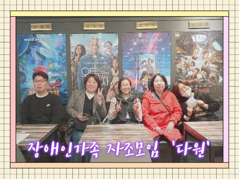 2차 장애인가족자조모임 '다원' 강수환 0 311 2023.04.04 12:19 안녕하세요 고창군장애인복지관입니다저희 복지관에서는 장애자녀 부양가족을 대상으로문가여가생활 및 사회공헌활동 지원을 통한 지역사회내 자조모임을 확대하는 목적으로사업을 운영하고 있습니다.이번 2차 자조모임 '다원'은 보호자분들의 양육스트레스 해소 및 친목도모를 위한영화관람 및 간담회를 진행 하였습니다.양육자간의 근황 파악 및 최근 정보를 교류 할 수 있는 계기가 되어서 뜻깊은 시간이 된 것 같습니다.- 자조모임 관련 참여문의 562-3777 기능향상팀 강수환 -