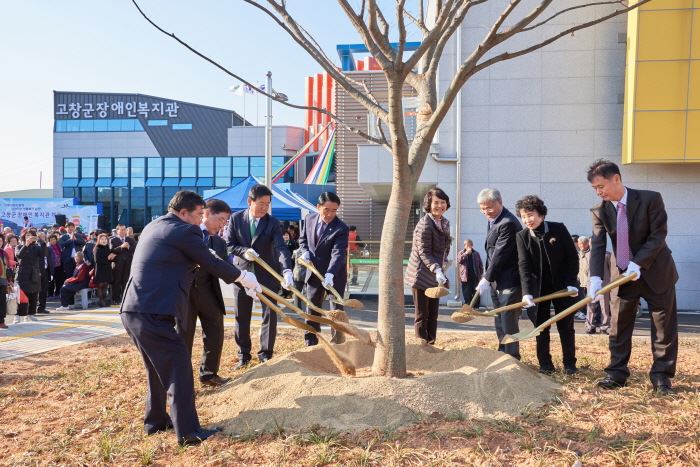 고창군장애인복지관 개관식 기념식수 최고관리자 0 1182 2017.11.16 18:47 고창군장애인복지관(관장 정종만) 개관식이 지난 15일 진행되었습니다. 개관식에서 정종만 관장님, 박우정 군수님, 최인규 군의장님을 비롯한 내빈들이 기념식수를 하고 있습니다. 식수인 느티나무가 자라듯이 우리 고창군장애인복지관도 고창군 장애인들에게 든든한 버팀목이 되도록 노력하겠습니다.