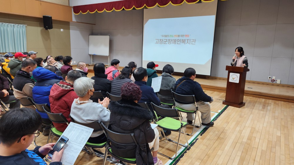 2026년 고창군장애인복지관 프로그램 설명회 진행 김길영 0 204 01.14 11:13 ○ 일시 : 2026. 1. 14.(수) 10:30 ~ 11:30 ○ 장소 : 고창군장애인복지관 강당 ○ 대상 : 복지관 이용인 약 100명 ○ 내용 : 2026년 고창군장애인복지관 프로그램 설명회 진행 ○ 후원 : 고창원마트 상품권 100만원 (경품 추첨)