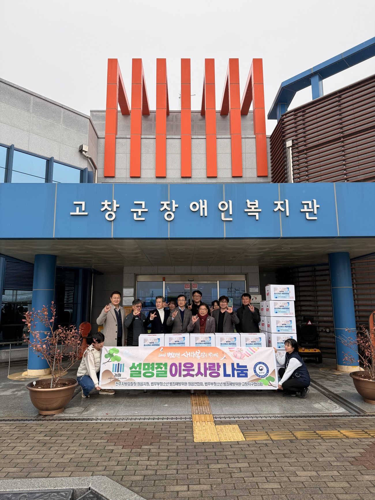 [후원] 법무부 청소년 범죄예방위원회 강지희 0 122 02.10 13:12 ○ 일시 : 2026. 2. 10.(화) ○ 장소 : 고창군장애인복지관 ○ 후원자 : 법무부 청소년 범죄예방위원회 ○ 후원품 : 온정나눔 생필품 1,000,000원