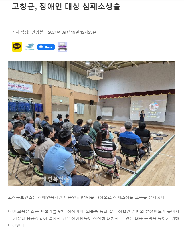 고창군, 장애인 대상 심폐소생술 [새전북신문] 문설 1 364 2024.09.24 10:20 http://sjbnews.com/news/news.php?number=827679 + 14 고창군, 장애인 대상 심폐소생술 [새전북신문]
