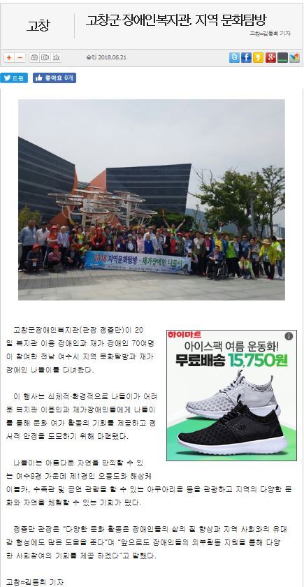 고창군 장애인복지관, 지역 문화탐방(전북도민일보,2016.06.21)