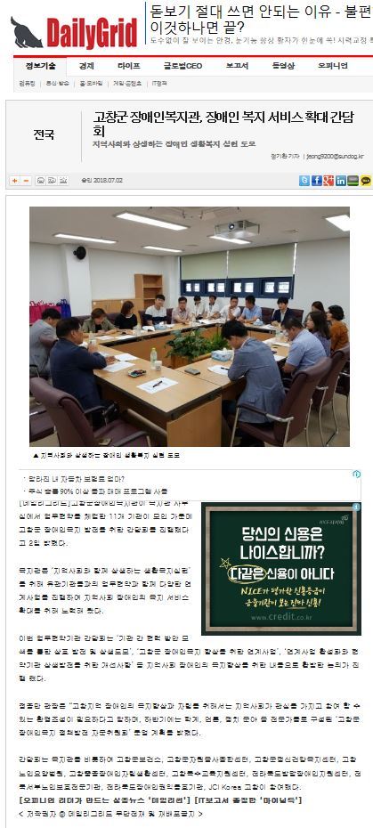 고창군 장애인복지관, 장애인 복지 서비스 확대 간담회(데일리그리드, 18.07.02)