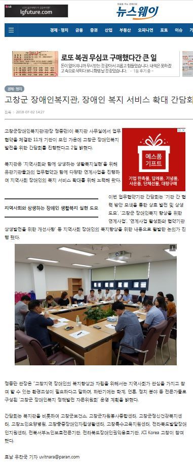 고창군 장애인복지관, 장애인 복지 서비스 확대 간담회 개최 (뉴스웨이, 18.07.02)