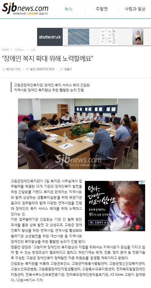 “장애인 복지 확대 위해 노력할께요" (새전북신문, 18.07.02)
