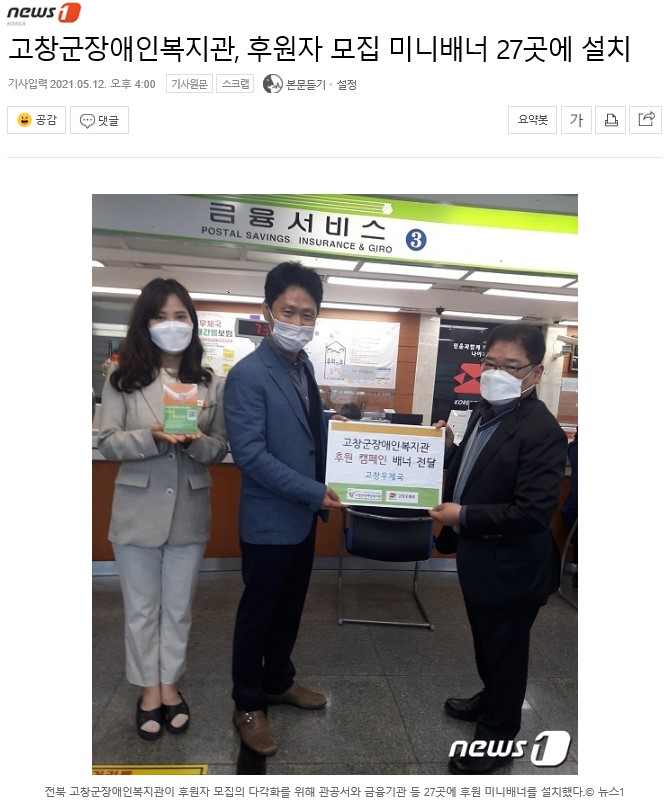 고창군장애인복지관, 후원자 모집 미니배너 27곳에 설치(2021. 05. 12 news1)