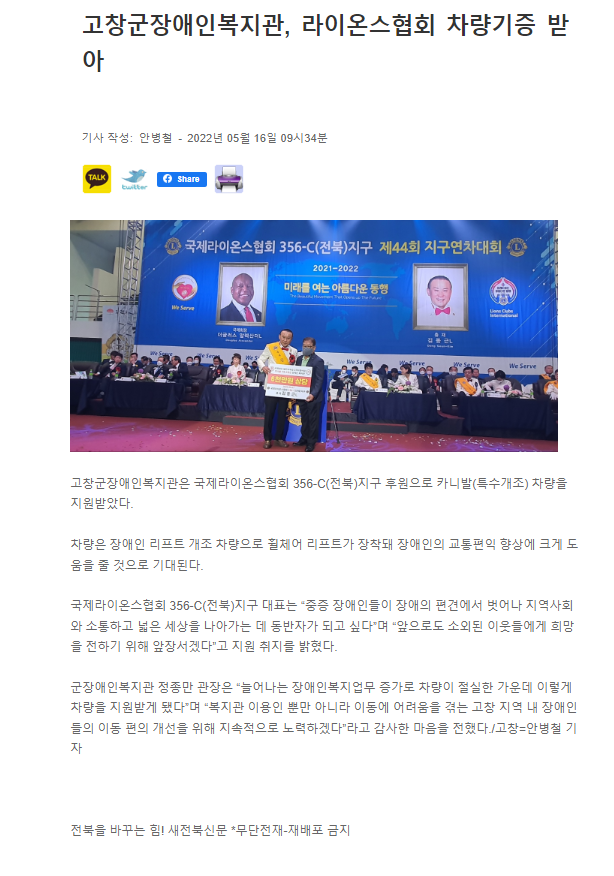 고창군장애인복지관, 지역 장애인 후원 추천 캠페인(2021. 04. 19 전북도민일보)