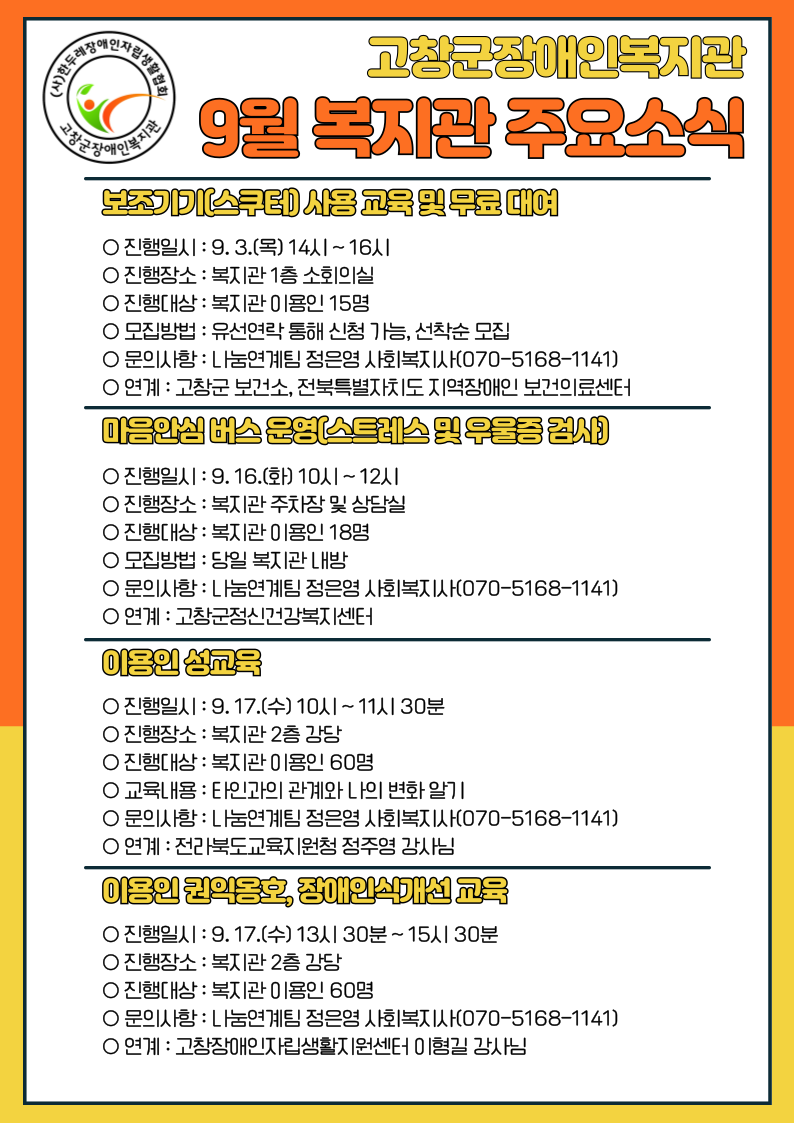 9월 복지관 주요 소식 안내