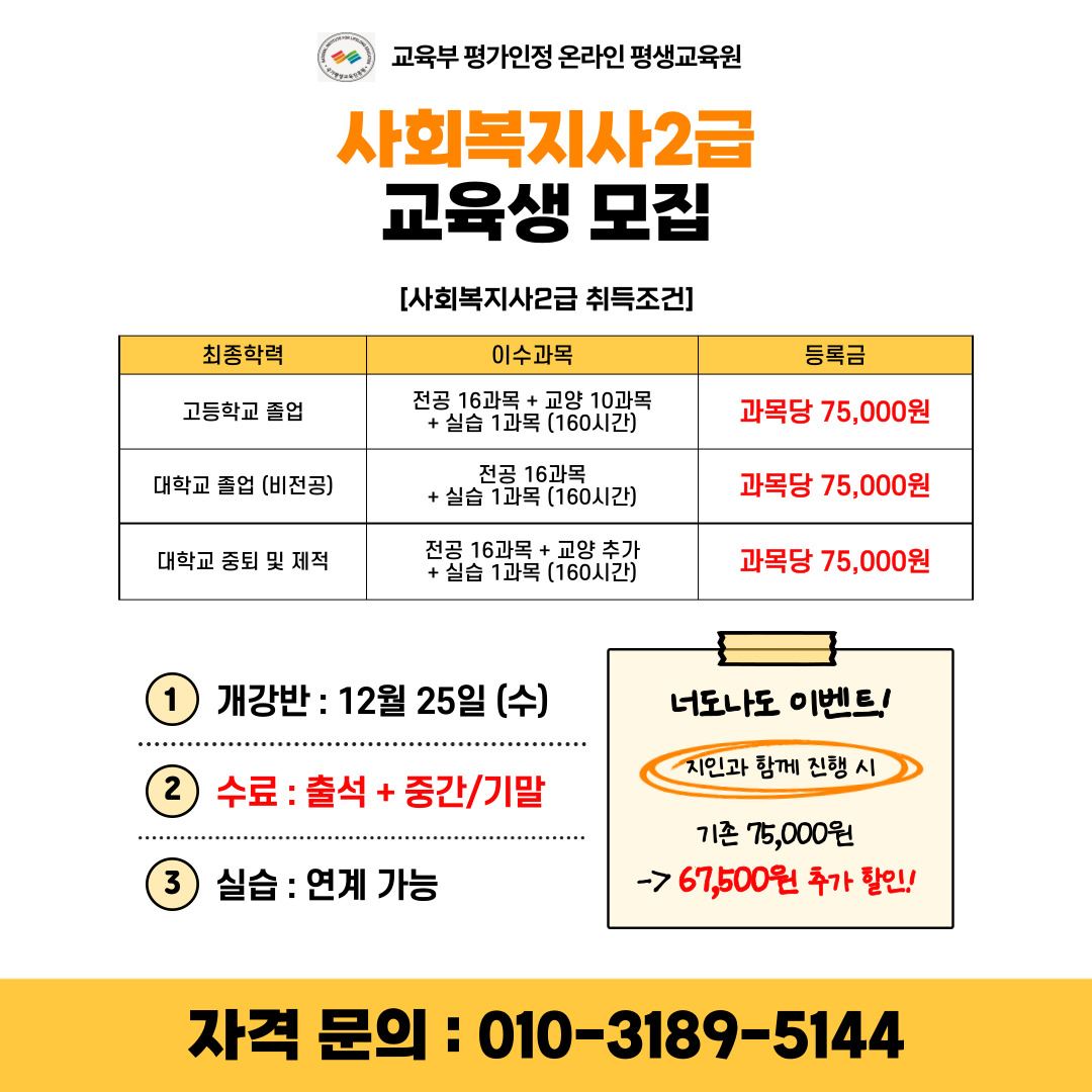 [공고] 사회복지2급, 무시험 과정 100% 온라인 교육생 모집