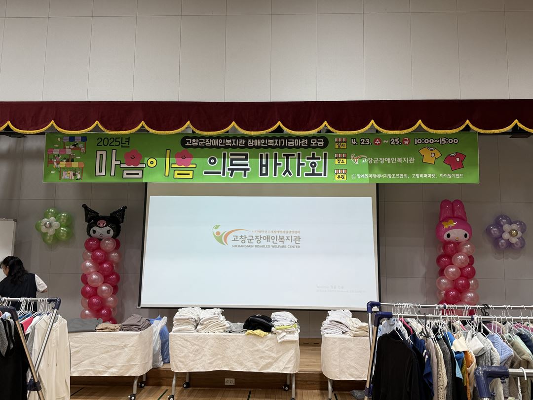 마음이음 의류 바자회 강지희 0 203 2025.04.29 13:50 ▶ 일시 : 2025. 4. 23.(수) ~ 25.(금) 10:00~15:00▶ 장소 : 고창군장애인복지관 2층 강당▶ 대상 : 고창군 지역주민▶ 내용 : 후원품 의류 바자회▶ 후원 : 장애인미래에너지창조연합회, 고창리퍼마켓, 아이원이벤트